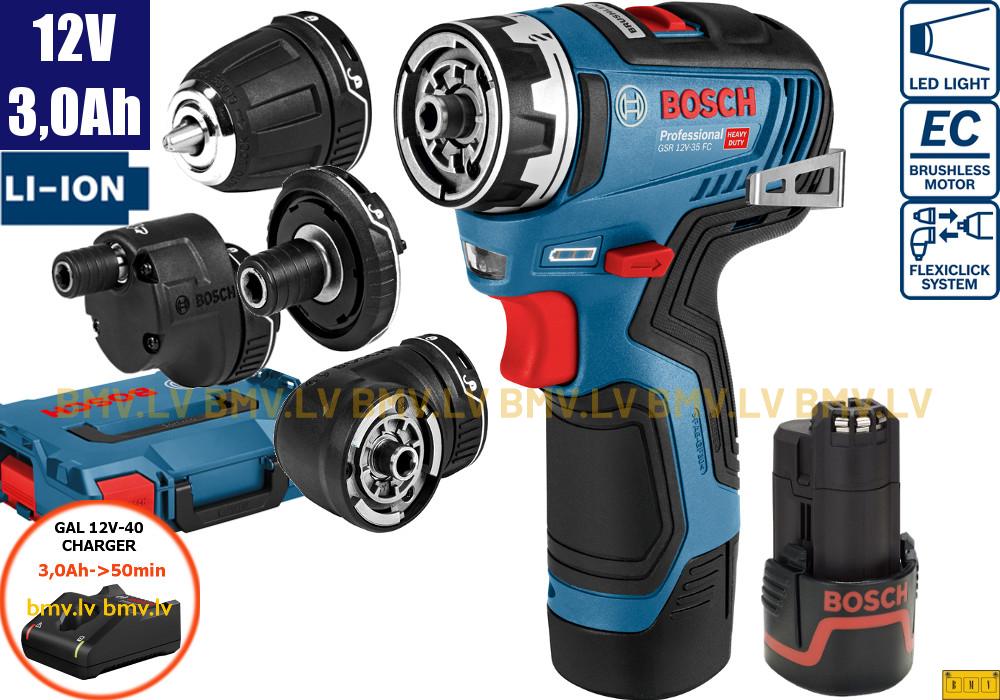Urbjmašīna/Skrūvgriezis Bosch GSR 12V-35 FC (2x3,0Ah, GAL 12V-40, L-Boxx, 4xGFA)
