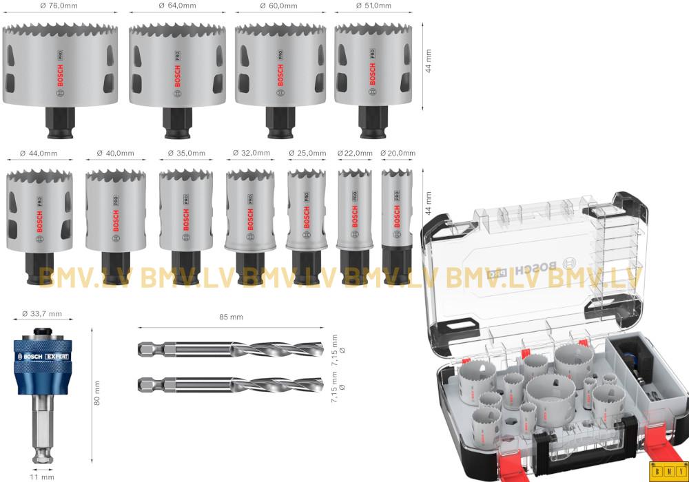 | 14-daļīgs Bosch PRO Multi Material kroņurbju komplekts 20, 22, 25, 32, 35, 40, 44, 51, 60, 64, 76 mm + adapteris un 2 centrurbji | | Ir BMV.lv noliktavā | 139.00 | | |