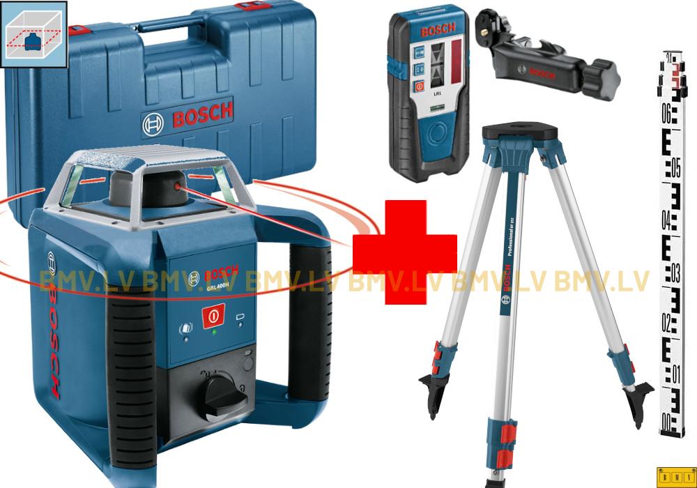 Rotējošais lāzers Bosch GRL 400 H (koferis, uztvērējs LR 1) + statīvs BT 160 + mērlata GR 240